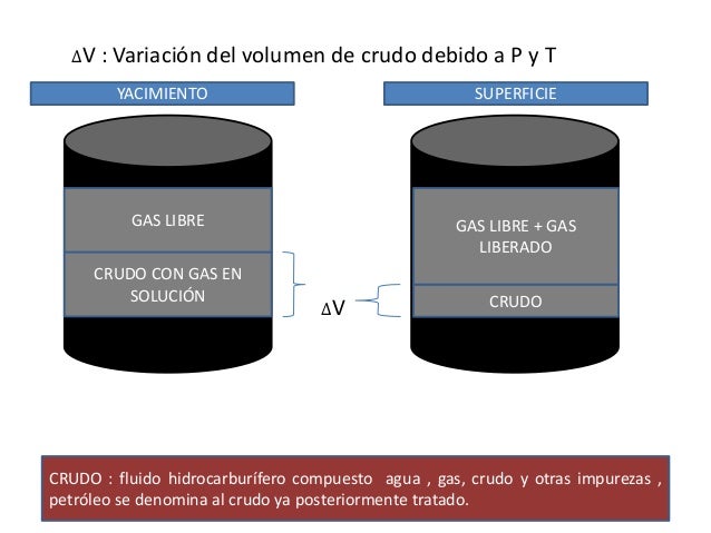 Debido a que condiciones de yacimiento se sabe que hay gas libre y crudo con gas en solución , al momento de traer el crudo a superficie el gas disuelto en el crudo se libera y entonces disminuye el volumen de crudo.